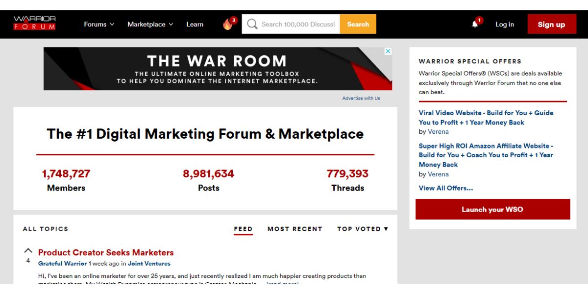 Warrior Forum is ideal for both beginners and advanced marketers who want access to a wide range of discussions and opportunities in affiliate marketing.